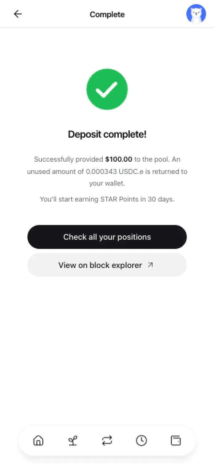 Confirm the notice by clicking the button to complete your deposit and earn STAR Points!