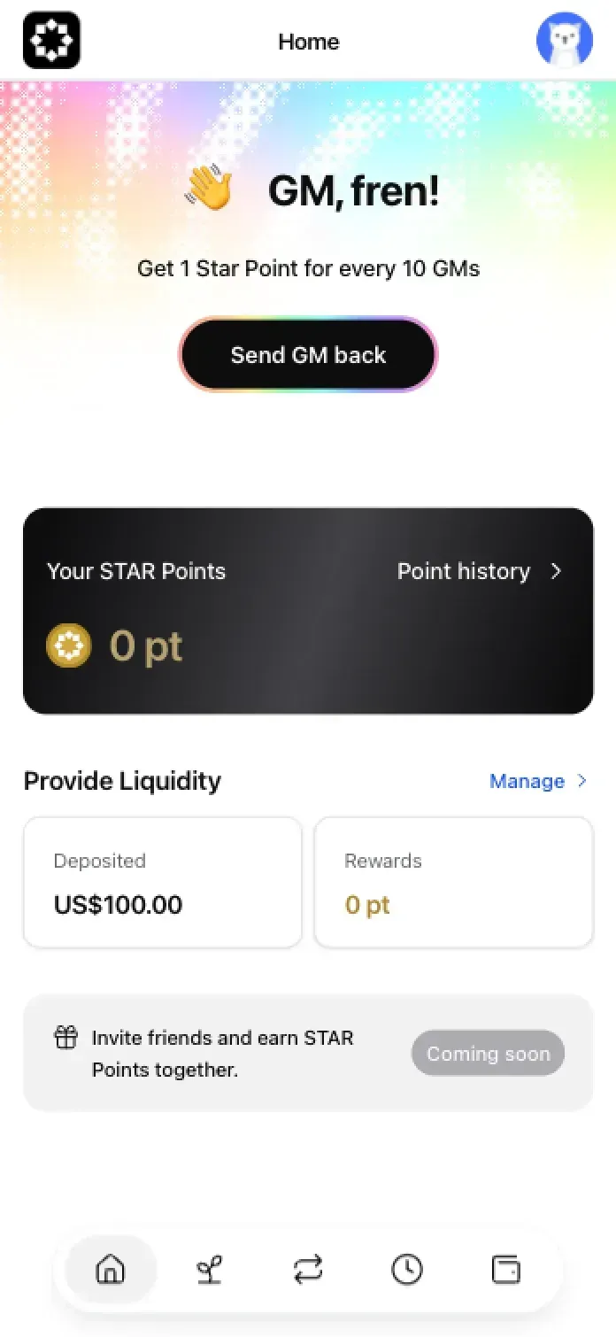 - Earn – Deposit to earn competitive yields or to accumulate STAR Points through liquidity provision